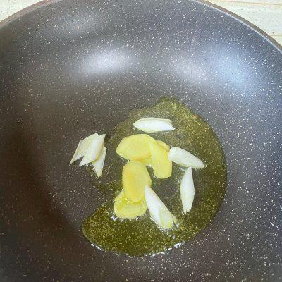 3、锅中加入少许油,加入姜蒜炒出香味。
