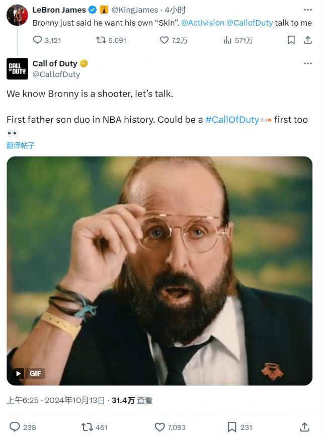 接着,《使命召唤》正式回复:众所周知,布朗尼是个射手,我们来谈谈吧。NBA 历史上第一对父子组合,也可能是使命召唤历史上第一对父子组合。