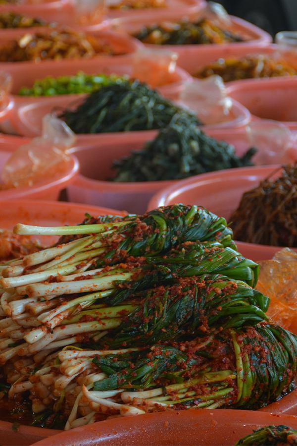 走出西塔主街,钻进附近东西向的小街,有更生动的朝鲜魅力。在胡同的配菜市场,你几乎可以买到朝鲜菜里所有的食材,尤其是十几种辣酱更加惊艳,有专门用来拌饭的,有用来做辣白菜的,有用来蒸鱼的,还有用来做酱蟹的。还有十几种泡菜,枸宝、萝卜咸菜、黄瓜,即使是普通的辣白菜,也分为偏酸、偏咸、偏甜三种。