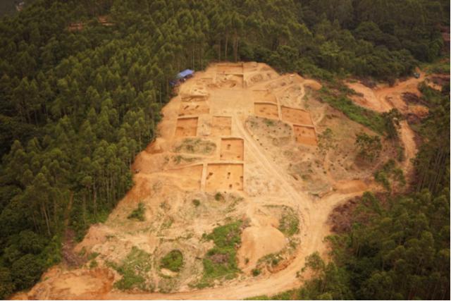 挖掘初期俯瞰增城墨依山遗址(西南 - 东北)