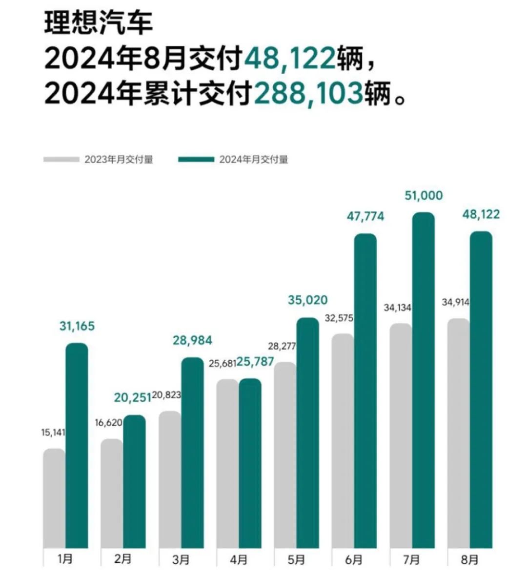 图/理想汽车1-8月交付量,来源/理想官微新能源观截图