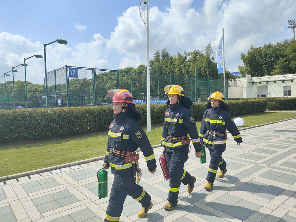 防患于未然。每天早上8:30,闵行区消防救援支队指战员已在旗忠网球中心到位,3辆消防车和42名消防员正在等待,时刻准备应对突发情况。