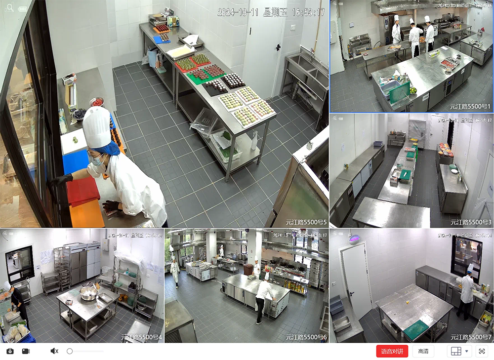 闵行区市场监管局保障人员表示,在去年使用AI检查摄像头的基础上,该局今年控制了7套“互联网” “明厨亮灶”设备,全面覆盖公共餐饮凉菜专用房间,可实时将生物进入、人员未按要求佩戴等情况推送到后台,确保人员能够通过语音远程监督整改。