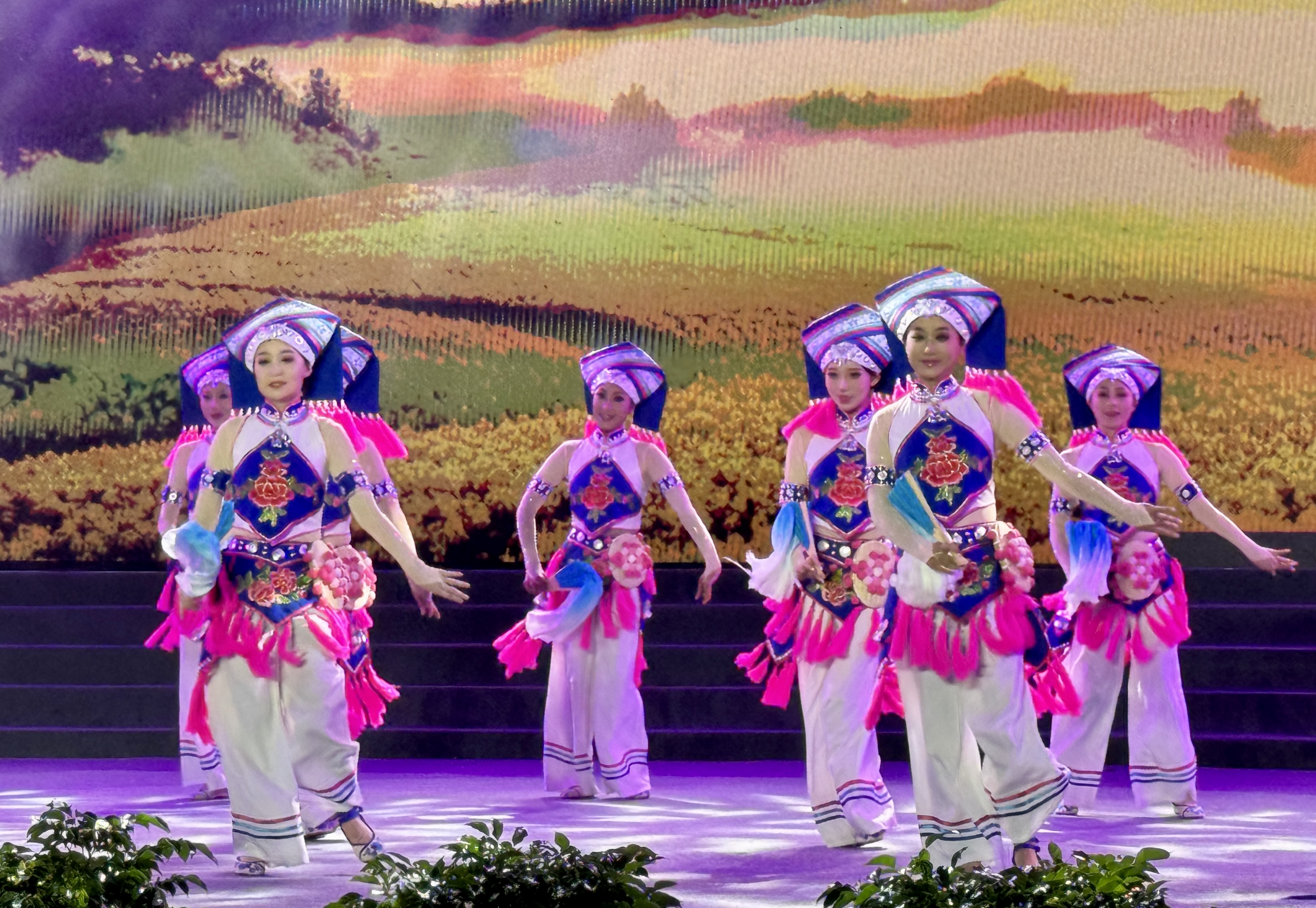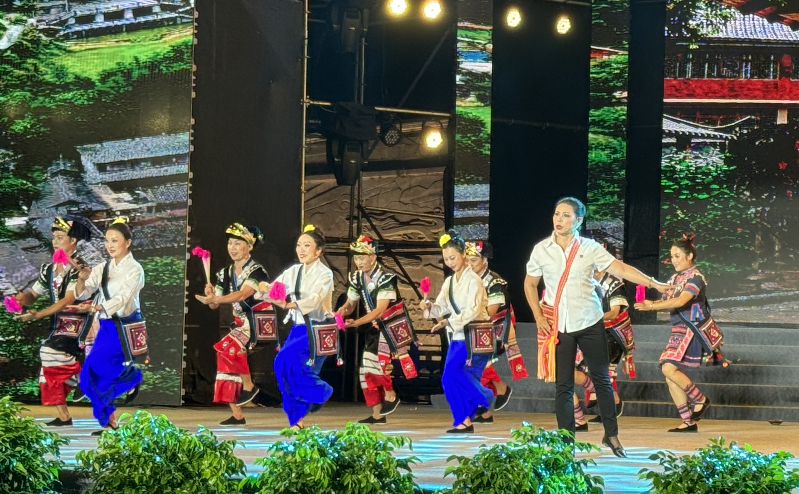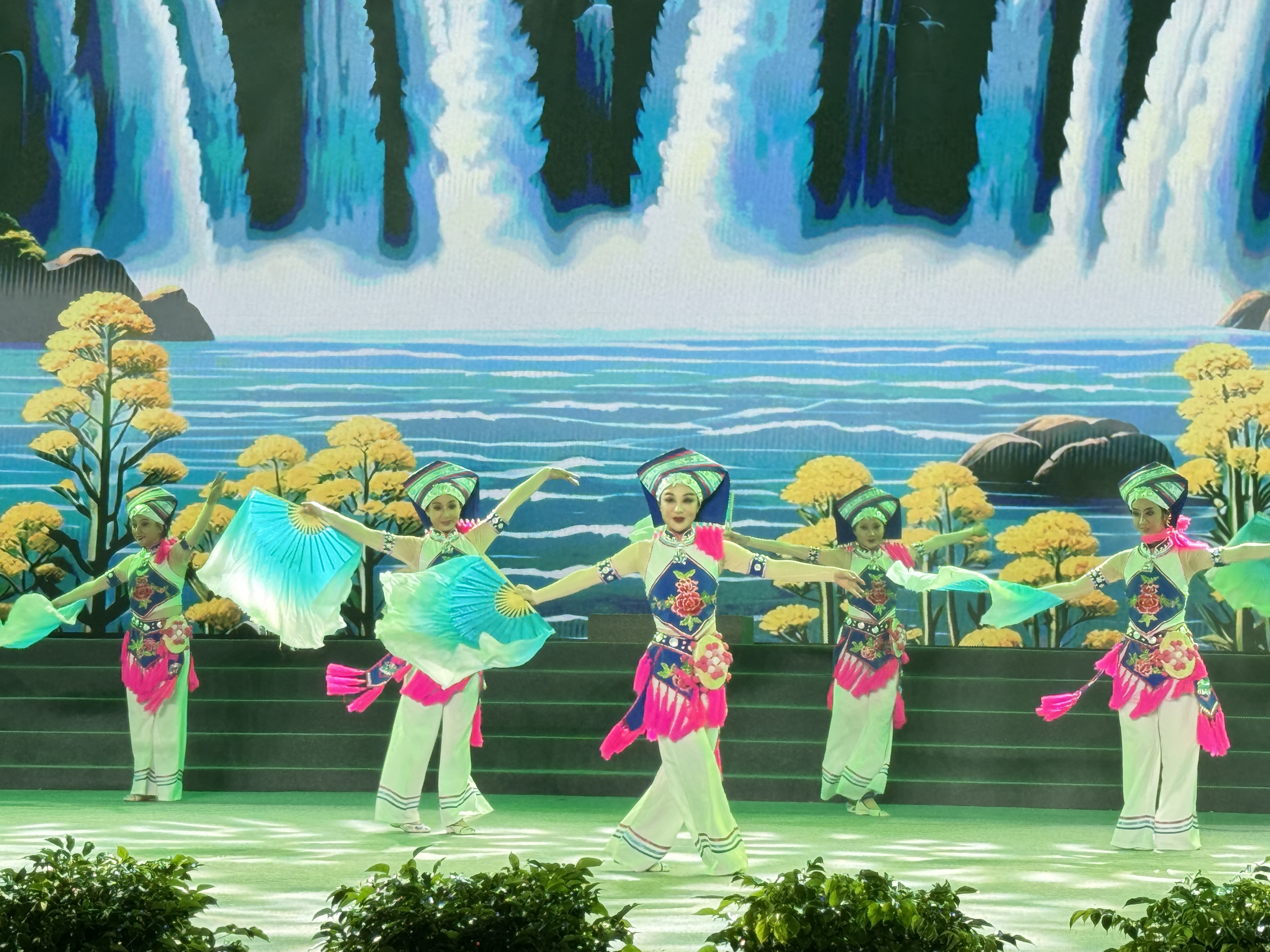 接着,其它精彩的表演也纷纷上演。《听到海浪的声音》以其独特的艺术视角和表现手法,巧妙地将两个不同时代的人联系在梦里。他们一起表达着根植于内心的爱国情怀。观众似乎被带入了跨越时空的奇妙旅程,他们的心潮起伏不定。另一方面,《红包》以贴近生活的故事、幽默的情节,吸引了观众的笑声,现场气氛轻松愉快。《最美的柯里》就像一幅缓缓展开的画卷,生动地展现了多民族融合发展的和谐美好景象,让人心旷神怡。而且《浣纱情》中壮族姑娘们以柔美的舞姿,动人的故事,给观众带来美好的感觉。