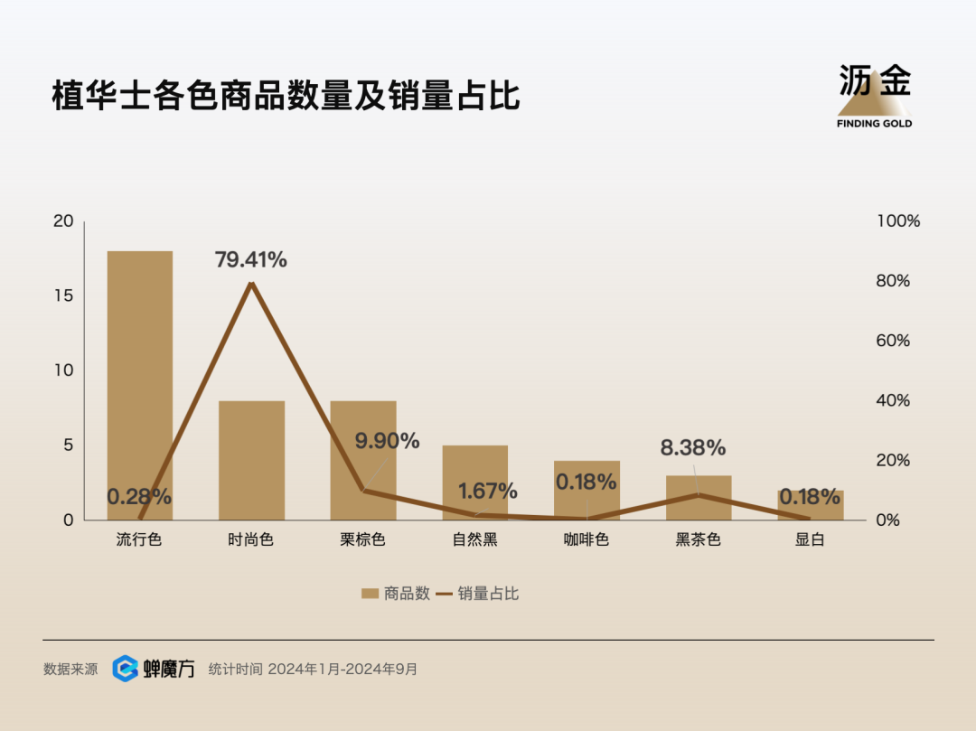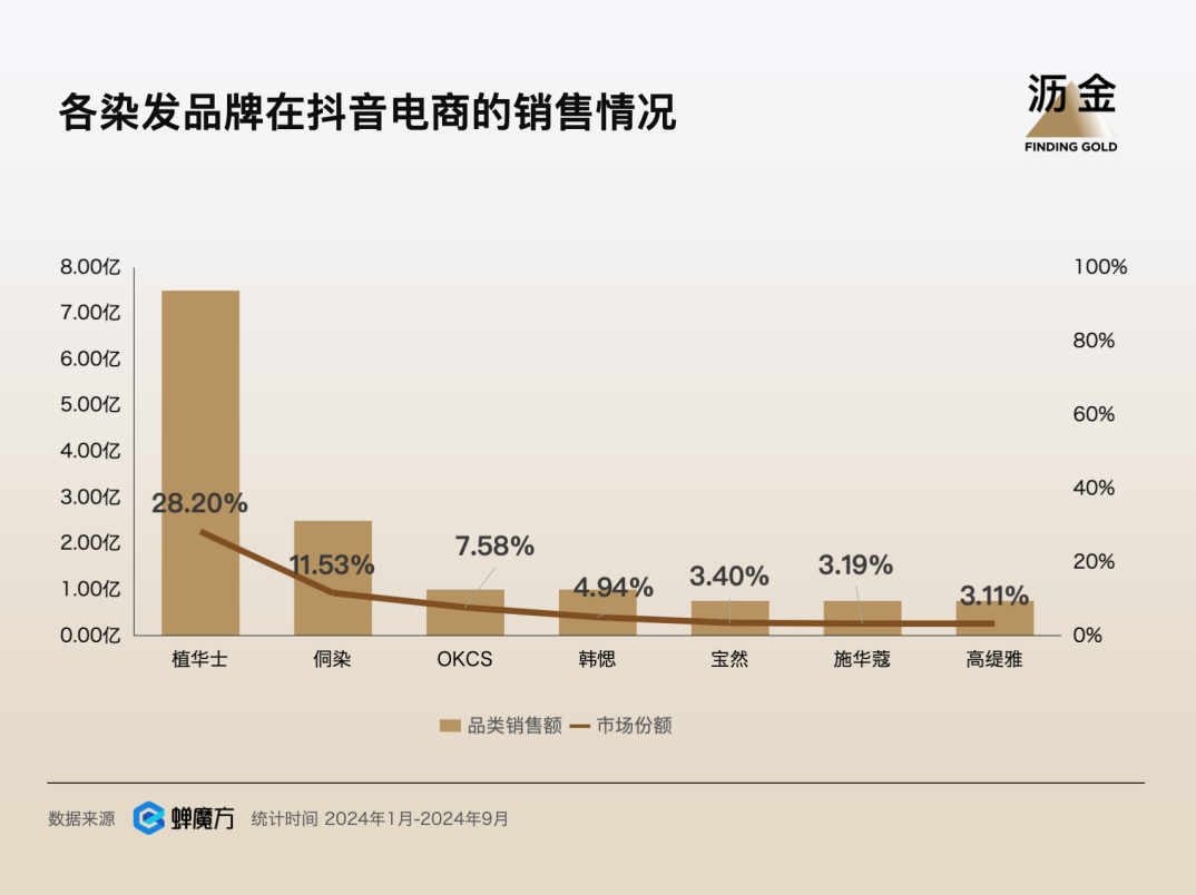 据蝉魔方介绍,今年以来,植华士和侗染品牌在染发跑道上占据了近40%的份额,主要推广纯天然植物原料,植华士在悬崖上处于领先地位。