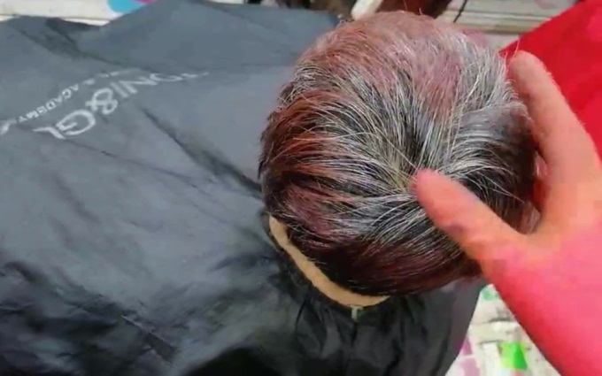 谁说老人只能自己染一个单色,不能做一个挑染?