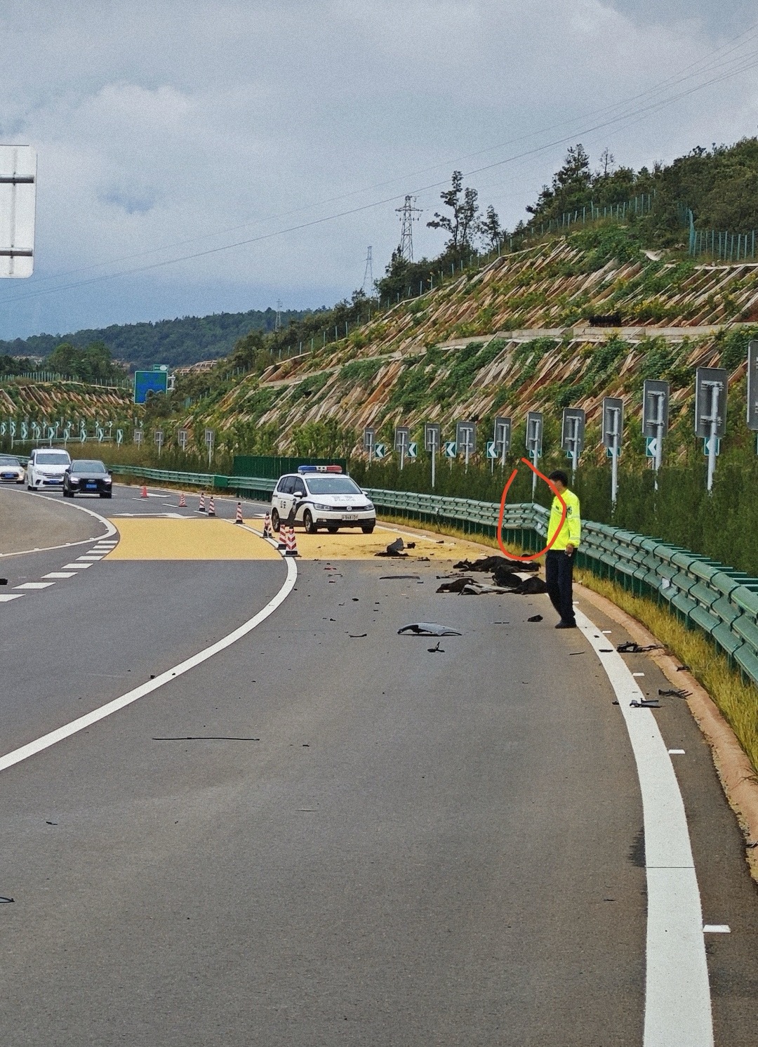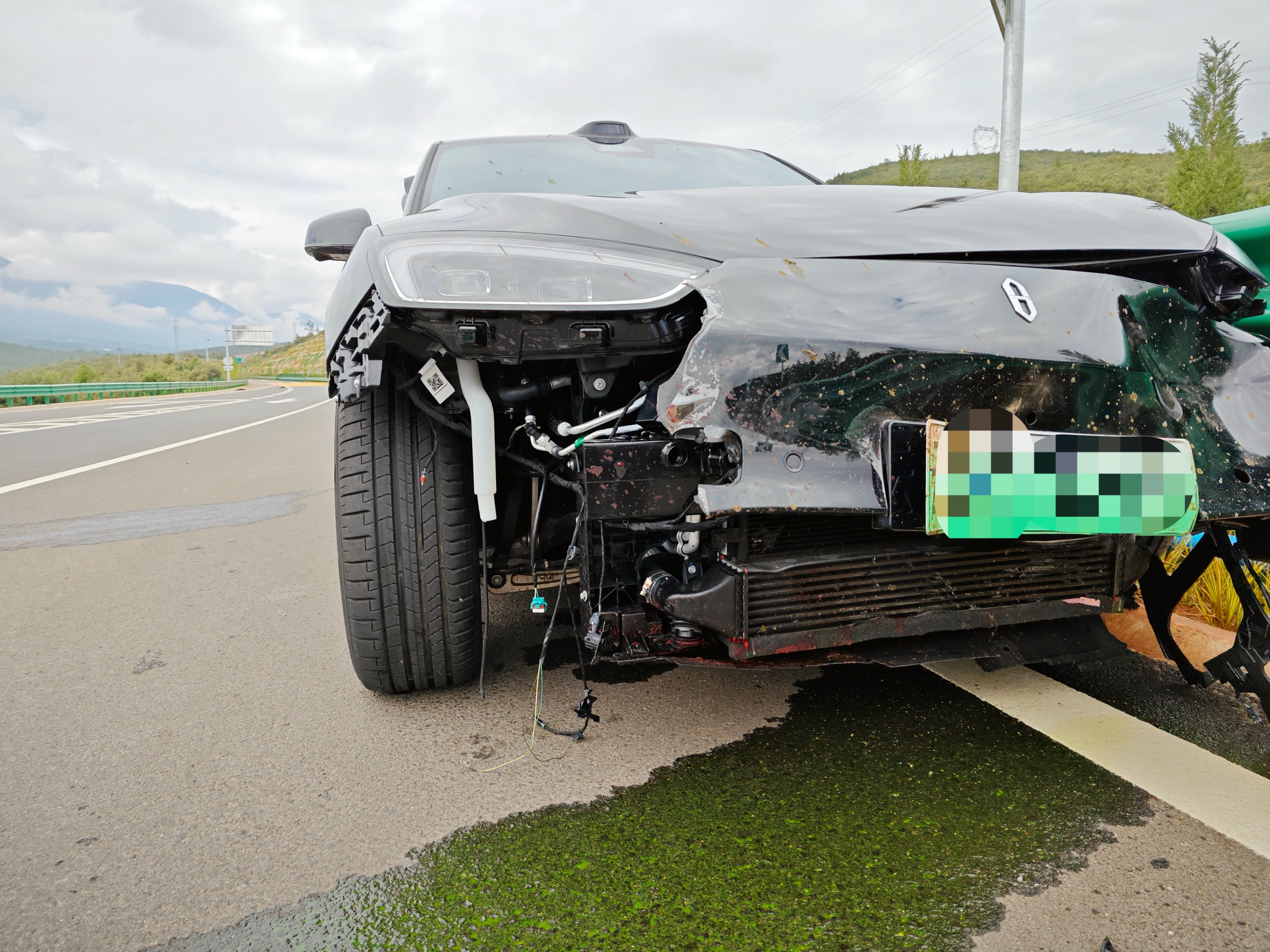 大理州派出所交警支队大理高速公路交警队道路交通事故认定:10月7日11时52分,吕先生驾驶小型新能源汽车在云南省大理市鹤庆县宾河高速公路61公里480米鹤庆至宾川方向,由于操作失误,驾驶车辆与进入高速公路的动物相遇,公路交通经济损失事故发生在车辆前部、车身左侧和高速公路中央钢护栏上;司机吕先生受伤;当事人吕先生承担全部责任。