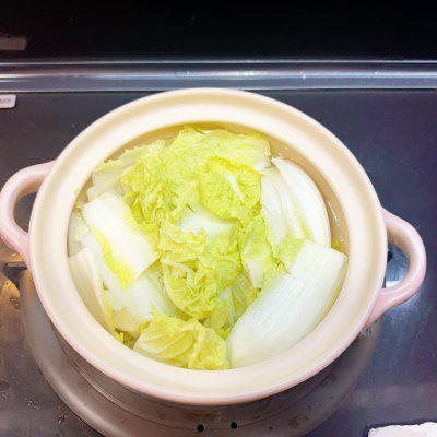 5、放入洗好的娃娃菜,加开水不过食材。