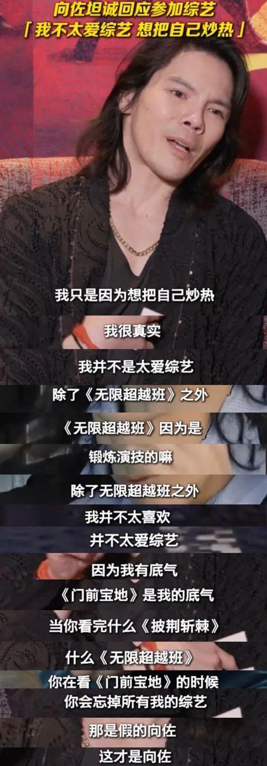 在采访中,向佐直言不喜欢参加综艺节目,参加节目是为了让自己变得火热。