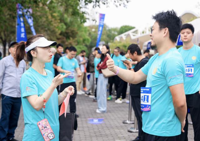 结对仪式结束后,残奥健将辜海燕和张亮敏下达命令,参与者开始了残奥健融合马拉松公益跑的第一次结对跑,享受运动的乐趣,感受结合的力量。