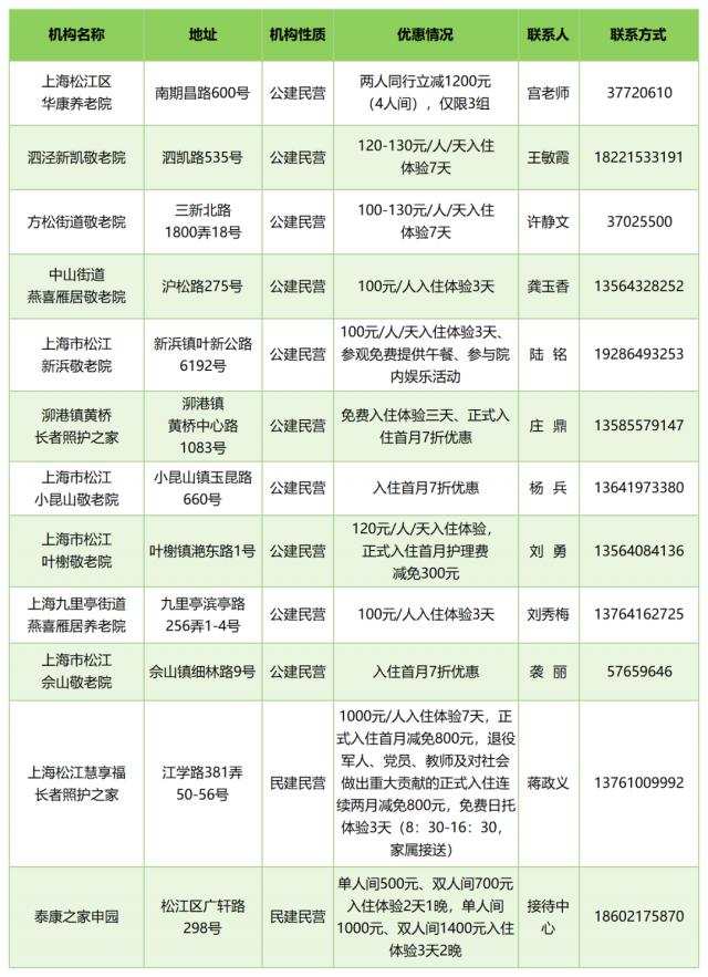 松江市12家养老机构推出“入住体验”优惠活动,名单