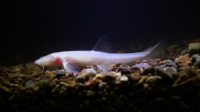 在一条溶洞地下河中发现了“紫云高原鳅”,这里的水流缓慢,栖息地约在离洞口。 80 在大米里,发现的数量很少。洞穴内,物种呈现半透明浅粉色,头部和身体有不规则的深褐色斑块。经过一段时间的洞外养殖,研究人员将收集到的标本逐渐恢复。