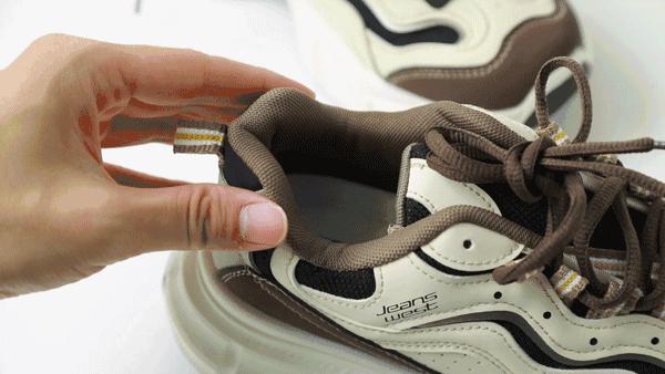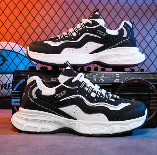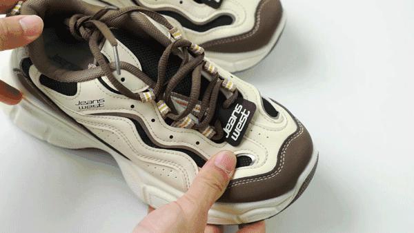 有白灰和黑灰可以选择两种模式,鞋前和鞋跟都有。 JEANSWEST 时尚 logo,组合没有任何错误。