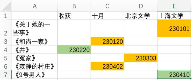 比如你可以用表格记录稿件的提交情况。橙色表示审查或未完成稿件,绿色表示稿件已过。未完成稿件的作品,修改后继续投票,直到变成绿色(稿件)。