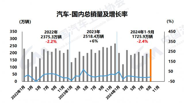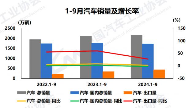 上个星期六,中国汽车工业协会宣布今年 9 本月和前三季度国产汽车(包括自主、合资、独资)的产销统计。随着新能源汽车和汽车出口的大幅增长,今年前三季度国产汽车产销完成。 2147 万辆和 2157.1 万台,同比增长 1.9%和 2.4%,实现微增长。但是,如果刨掉出口,国内汽车销量和国内乘用车销量都是负增长。