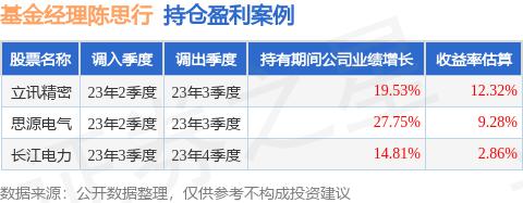 汇添富稳定盈和陈思行管理的一年混合基金 23 年 2 季度购买思源电气,拥有。 1 个季度后在 23 年 3 季度销售。所有期间的估计收益率为 9.28%的思源电气拥有期间 2022 年至 2023 年度报告归属净利润增长达到 27.75%。