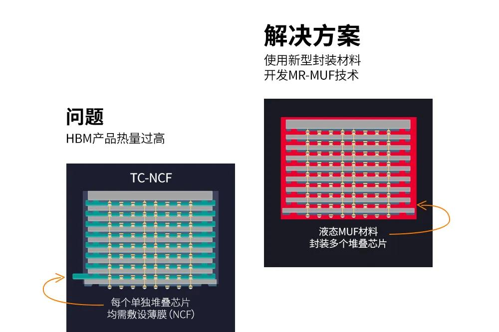 在第三代HBM产品-HBM2E的研发中,SK海力士将传热控制作为优化的主要焦点。2019年,新的封装技术MR推出-MUF,从而彻底改变了HBM市场的未来。