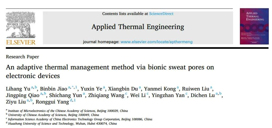 这项研究的结果是“n adaptive thermal management method via bionic sweat pores on electronic devices "问题已经出现了《Applied Thermal Engineering》。
