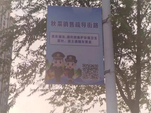 与此同时,为了方便市民和农民买卖秋菜,香坊区城管局在辖区内 50 条秋菜疏导街道和街道 13 便民疏导点,设置“秋菜疏导标志”“秋菜便民服务点”告知牌,哪条街可以买到秋菜一目了然。