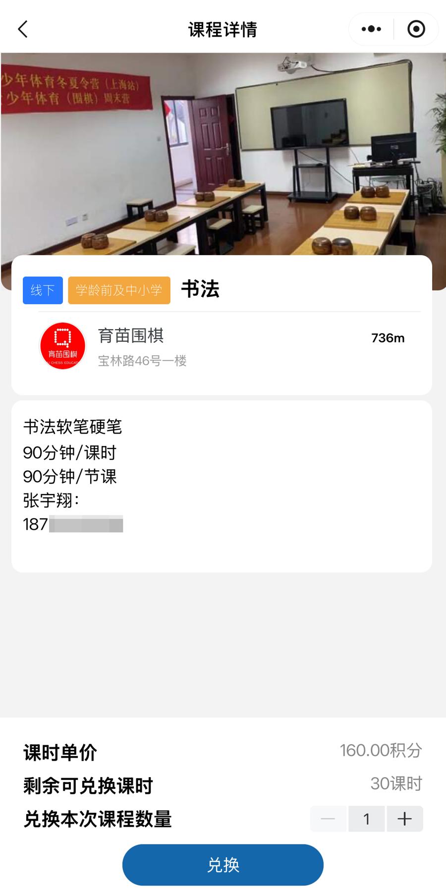 记者登录“安心转课”小程序,搜索定位后,在宝林路上找到了700多米的“苗圃围棋”。以书法课为例。平台上的苗圃围棋上架了30个小时,每个小时需要兑换160分。似乎真的可以满足很多儒家家长的需求。