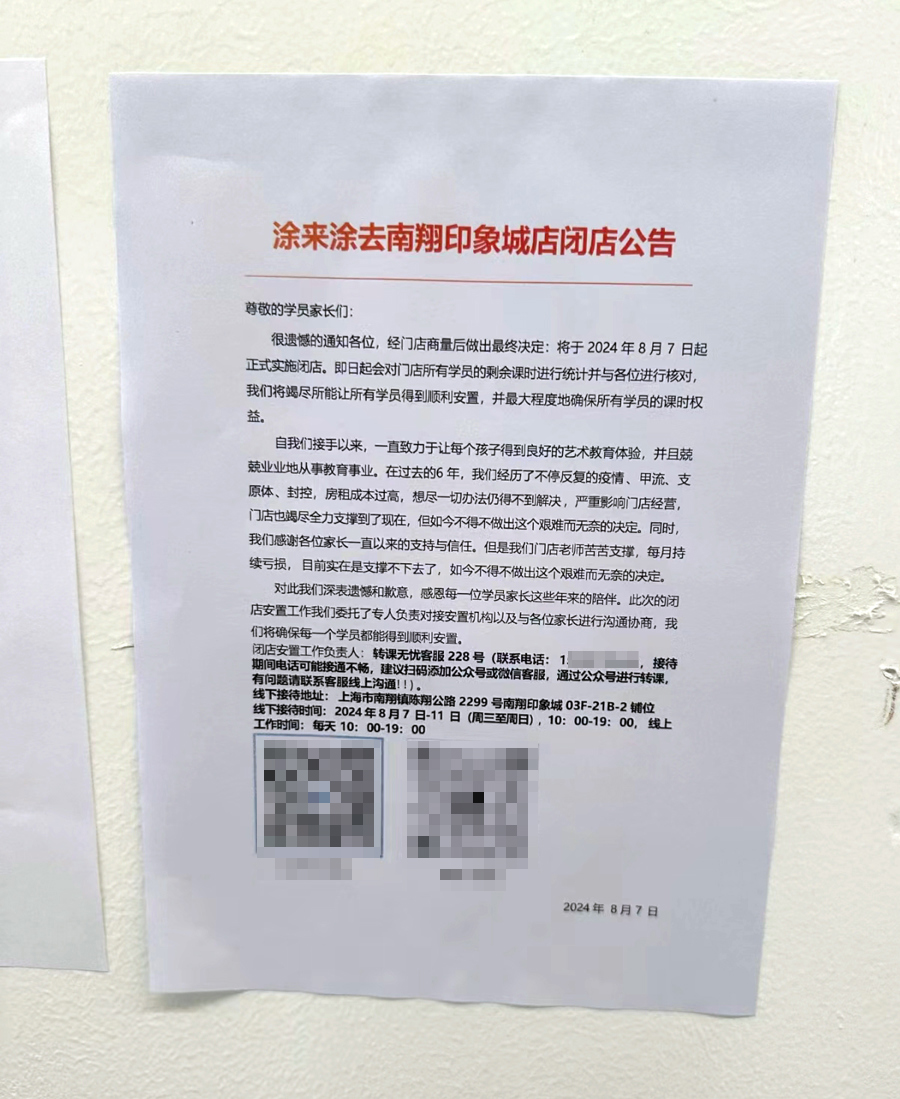 “涂涂涂涂涂”的教育培训机构闭店公告。