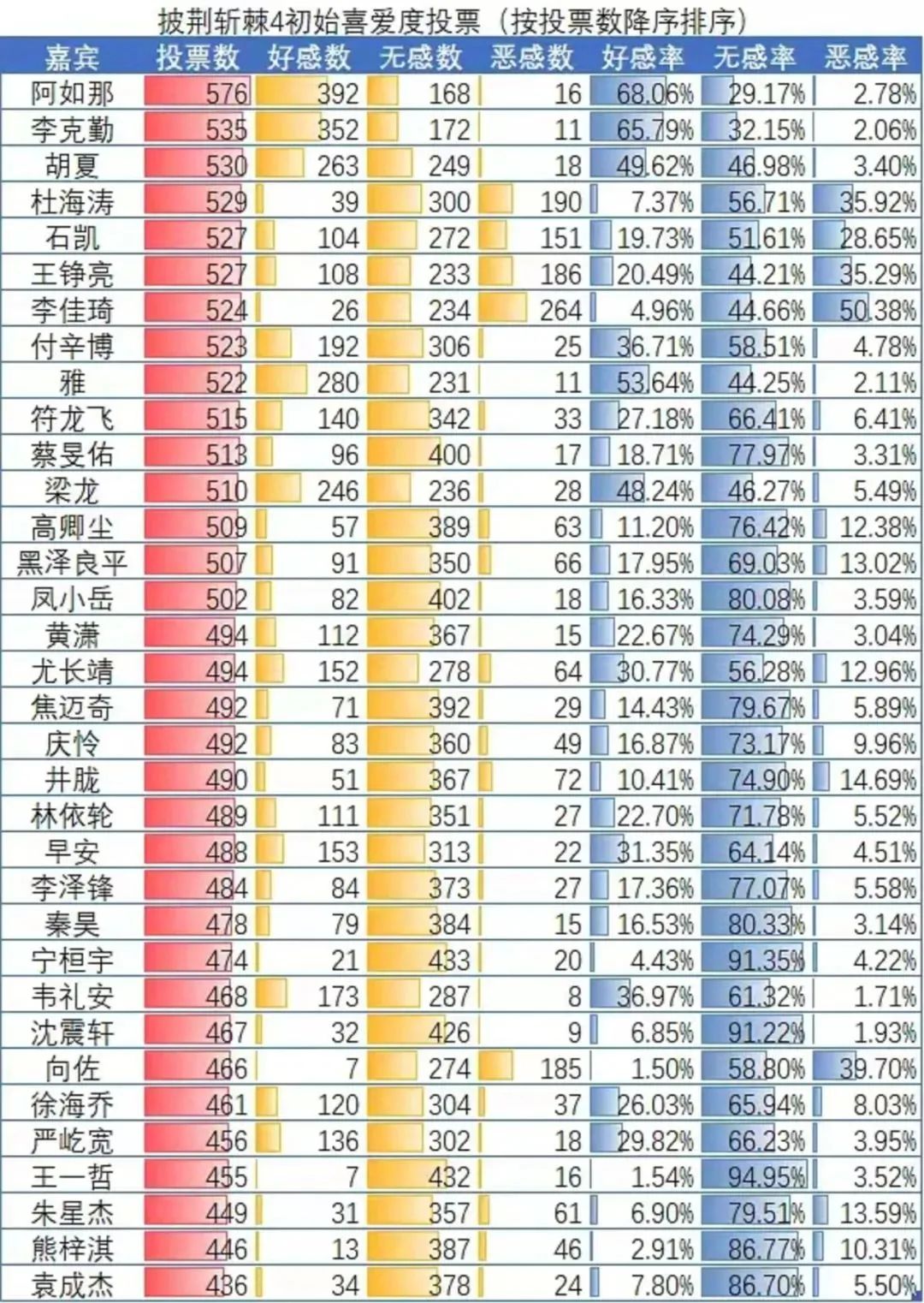 一些豆瓣网友自发统计了《克服困难4》的初始爱情投票,包括好感、无感、恶感等指标。李佳琦以50.38%的“恶感率”排名第一。