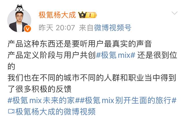 10月13日,@极氪杨大成还在个人社交账号上发了一段视频回应此事。“初衷是为了展示极氪mix的各种场景。没想到会引起这么多讨论。谢谢你的意见和反馈。”