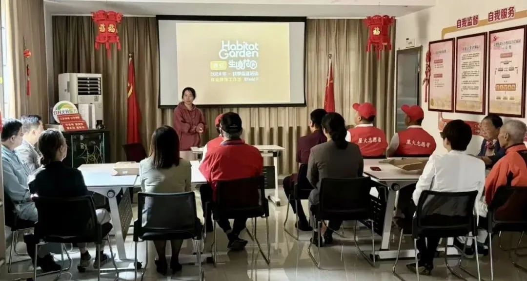 活动开始前,专业教师将昆虫旅馆的重要性介绍给居民,主题为“生境花园与昆虫旅馆”的PPT分享。