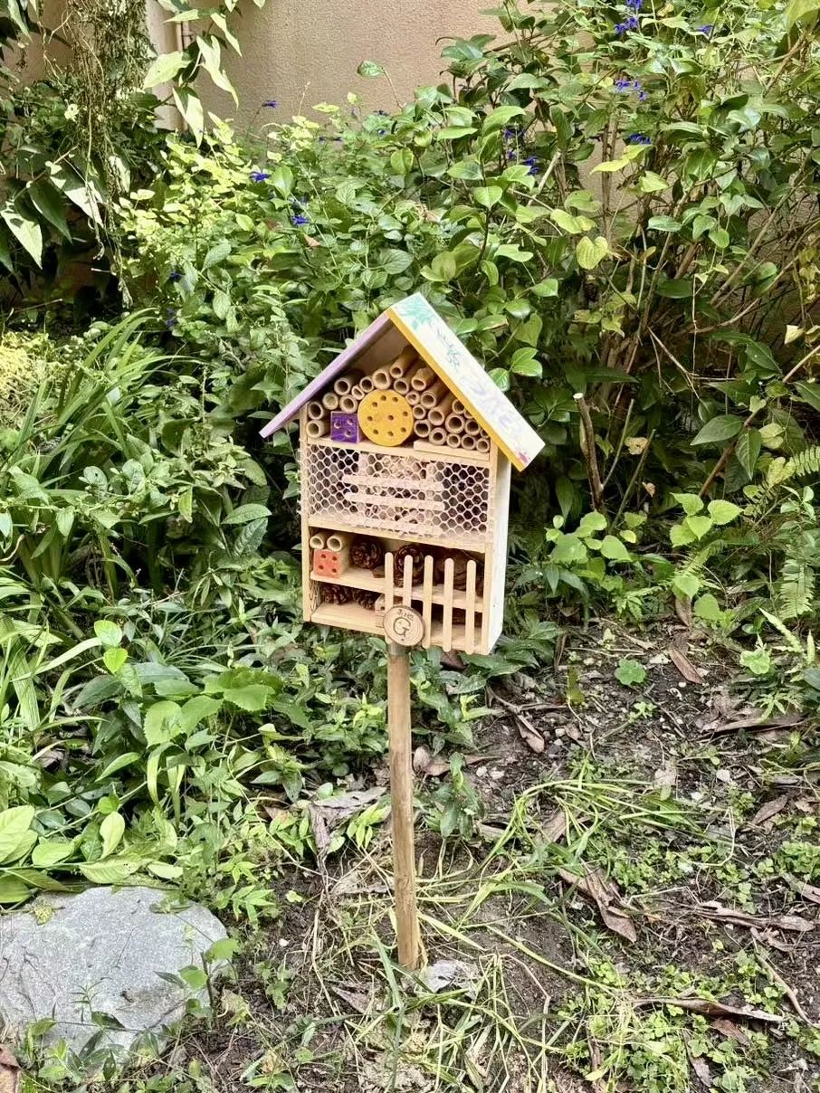 原来,昆虫旅馆又称昆虫屋或昆虫庇护所,是一种回收材料,如木材、稻草、砖块、竹子、芦苇等。,为各种昆虫提供不同种类的“房间”,供它们繁殖、栖居和过冬使用,从而提高它们的生存概率。昆虫旅馆不仅为昆虫提供了栖息地,也是生活园林生态系统中不可或缺的一部分,对保护候鸟和昆虫具有重要意义。