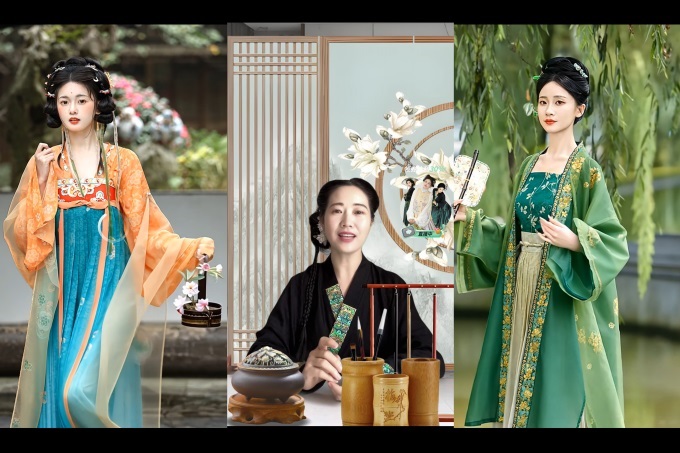 由绿珠AI数字人分身和言犀视频大模型产生的汉服展示