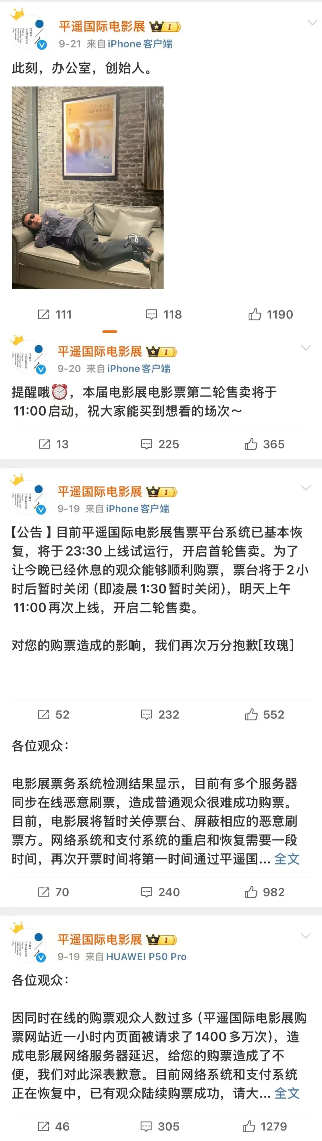 今年平遥电影节购票系统再次不负众望崩溃,开票时网页无法加载,成为每一位渴望抢票的粉丝的“惊吓”。更多的半夜开票、偷票等问题也让粉丝对平遥的票务系统有了更多的看法。