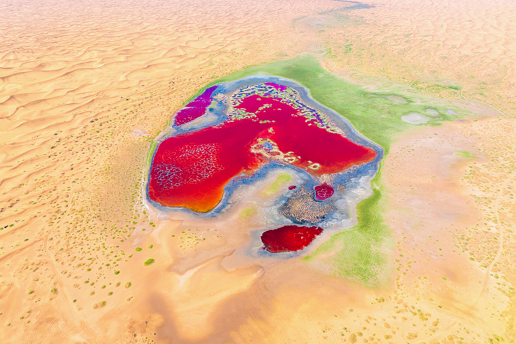 内蒙古阿拉善,左旗腾格里沙漠乌兰湖,2024年10月12日,“地球心脏”壮丽迷人。