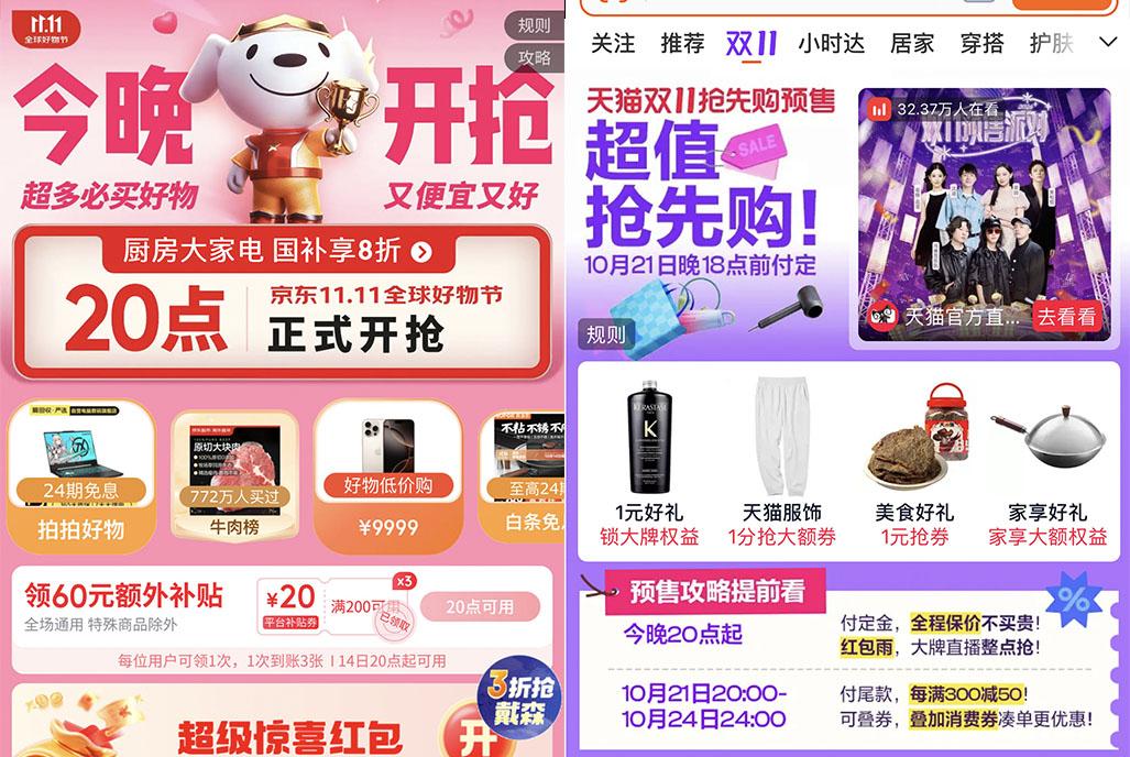 “双十一”更是与国庆假期无缝衔接,10月8日开始抢先期,直到10月17日结束,锁定了国庆后的购物需求;而且10月18日至11月11日是正式期。