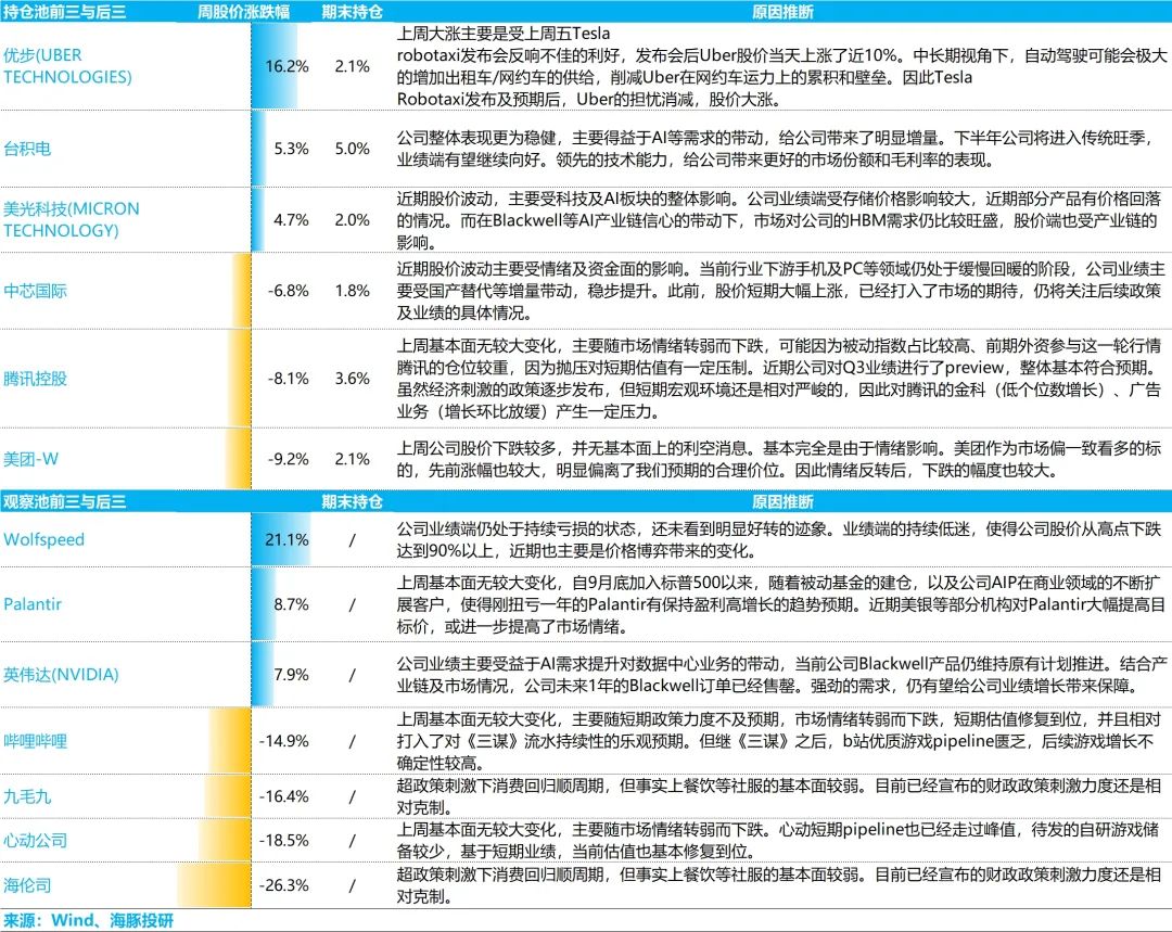 但整体节奏方面,第三季度业绩即将公布,估值已经修复。海豚君认为中概短期机会不大。。因此,进入财务报告季,上周持股大幅缓解(详情请追溯“回归柴米油盐,中概能否逃离摩底魔咒?”),并高度重视后续经济指标的提高和年底的经济政策。
