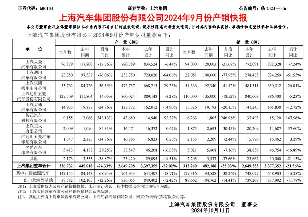 更令人惊讶的是,上汽集团公布的9月份销售数据显示,上汽通用9月份销售汽车2.2万辆,去年9月销售汽车10万辆,同比下降78%。