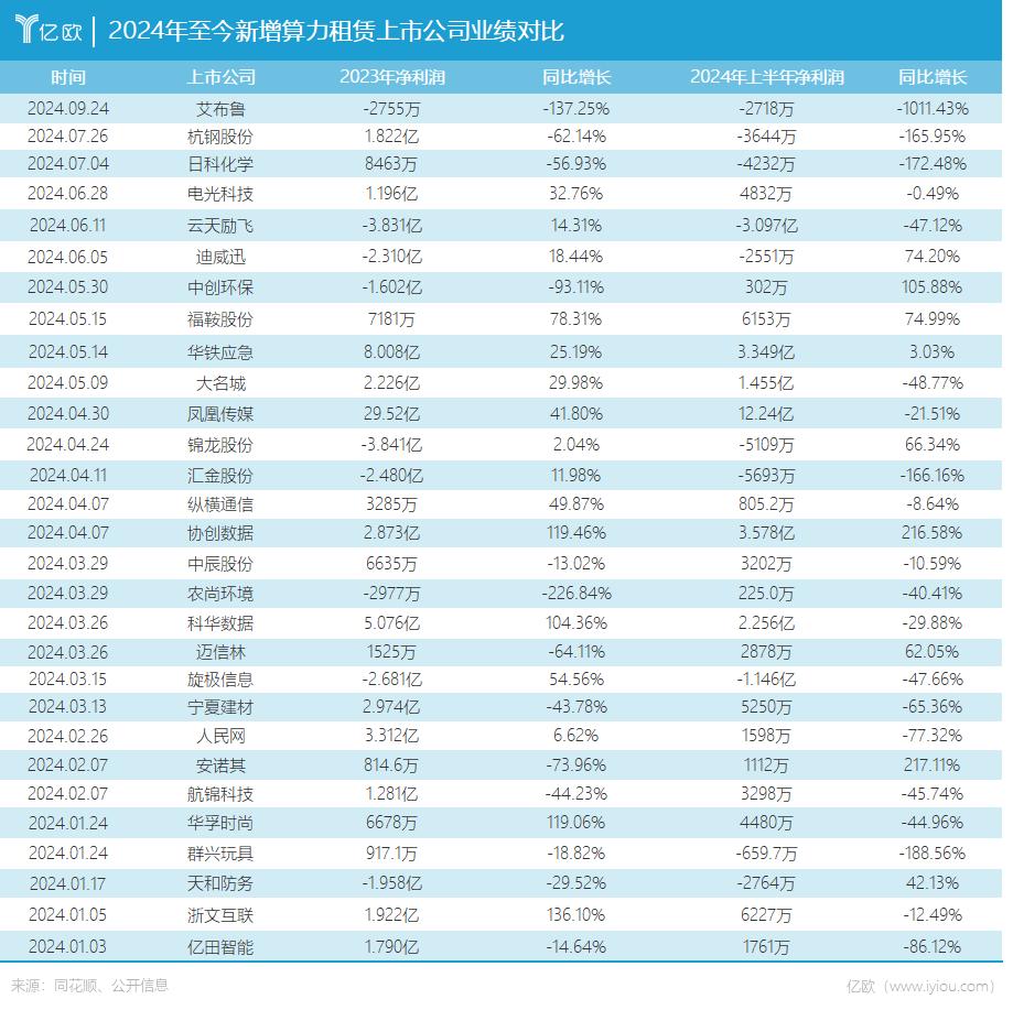 在接下来的几个月里,10多家上市公司,如协创数据、纵横通信、锦龙、凤凰传媒、大名城、华铁紧急、福鞍、艾布鲁等。,都宣布将“跨界”进入计算率租赁市场。