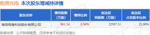 证券之星消息,10 月 14 日乾照光电发布公告《乾照光电公告》 : 中信证券有限公司股东海信视频科技有限公司于中信证券有限公司关于厦门甘照光电有限公司详细权益变动报告的财务顾问核实意见 2024 年 10 月 14 日合计加持 861.54 万股,占公司当前总股本的一万股。 0.9366%,这只股票在变化期间上涨。 7.88%,截至 10 月 14 日收盘报 8.35 元。