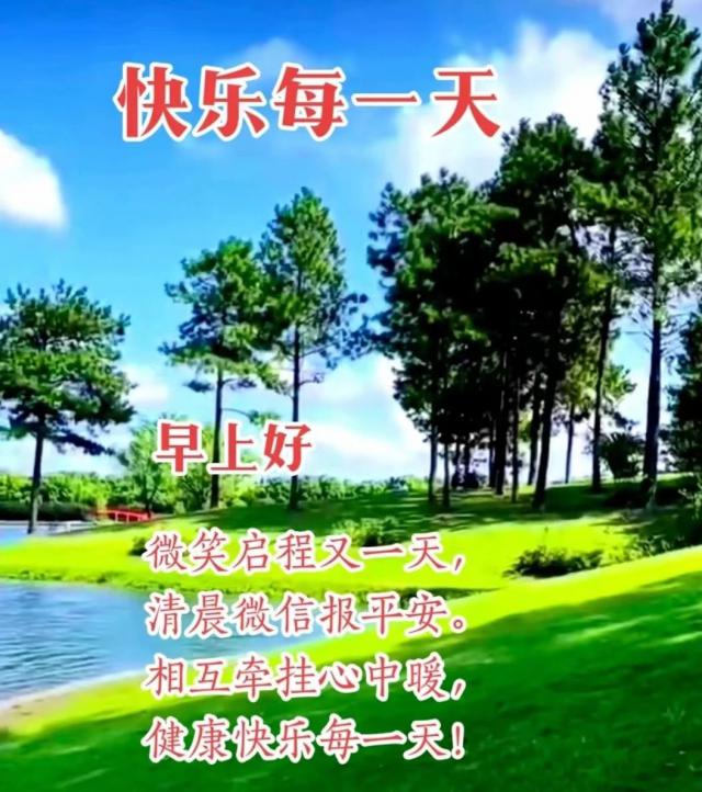 幸福是生活中的调料,问候是精神的营养,友谊是精神的寄托。感受这个早晨的美好,接受我的祝福,微笑,让我们一起走向美好的未来!祝你笑得开心,每天都过得充实美好!早上好!