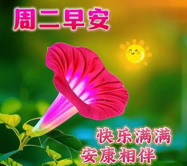 早晨的阳光给你带来了新的希望,愿你的周二早晨充满信心和勇气。不管面对什么,都要相信自己的能力,因为你是无敌的。早晨好!