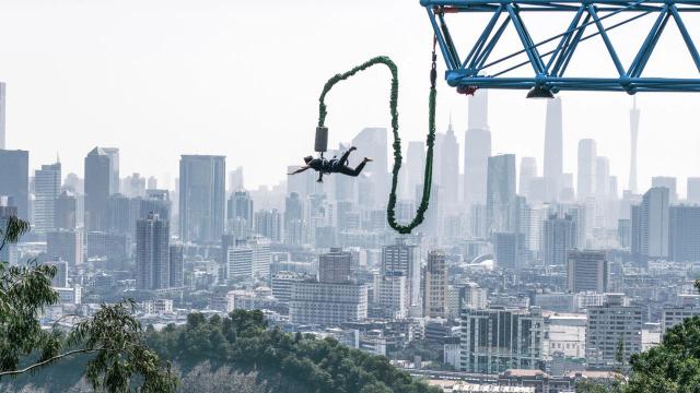 比如浙江安吉云草原景区、河北石家庄窦王岭景区、天津潮玩谷等推出的“窝囊蹦极”。与传统惊心动魄的蹦极项目不同,这个蹦极跳台离地面大约有几十米高。当游客跳下时,它不是自由落体的,而是一根绳子慢慢拖着游客稳步下降,十秒钟就能到达垫子。