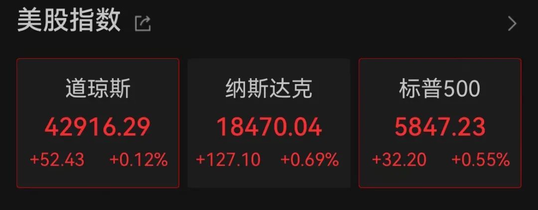 当地时间周一,美股开盘涨跌不一,截至发稿时,三大指数均上涨,道指上涨0.12%,纳指上涨0.69%,标准普尔500指数上涨0.55%。