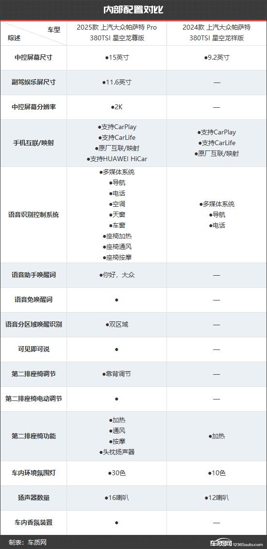 从这个对比可以看出,帕萨特 Pro 不但在价格上有诚意,而且在设备上也有明显的升级,如双区域语音识别、L2 等级辅助驾驶等均有配置,更具加热、通风、按摩功能,更符合当前年轻消费者购车需求。假如你最近正在考虑买一辆合资中型车, 2025 上汽大众帕萨特 Pro 值得你关注。
