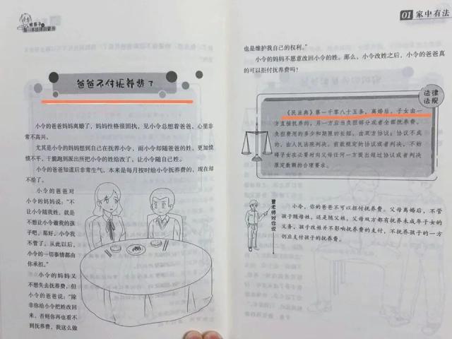 分为“家庭法”、“学校法”、“消费法”、“生活法”四大板块,其中包括孩子们的日常生活可能遇到的法律问题。