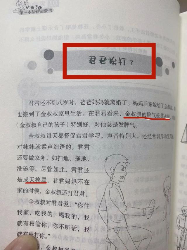 不妨找一些适合儿童年龄的法律小故事,比如,给予儿童的第一本法律启蒙书“君君挨打”,可用于儿童科普家庭相关法律知识。