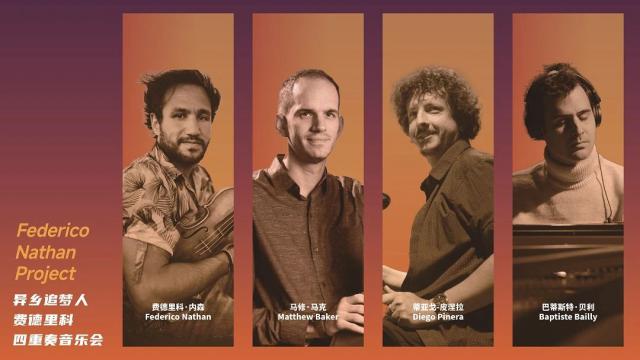 格莱美奖提名费德里科四重奏,小提琴家费德里科 · 以内森为首,包括低音提琴教授马修在内的乐团成员 · 巴蒂斯特,钢琴家, · 多才多艺的贝利和鼓手迭戈 · 皮涅拉。它们融合了古典主义、爵士乐和拉丁音乐风格,带来了多样化的音乐体验。