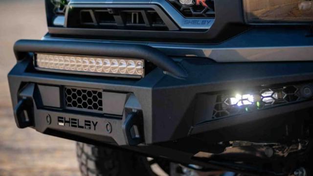 新车的很多细节都升级了,换成了带通风孔的。 Baja 引擎盖,车顶 LED 灯光、钢制保险杆等,最吸引人的还是格栅上的谢尔比标志!