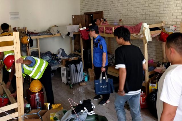 执法中队高度重视这一情况,迅速安排检查人员前往现场核实情况。经调查,该房屋为一室户,房屋内置有 4 张高低床,居住有 8 著名的平台外卖员,室内存在私拉乱接电线等诸多安全隐患。