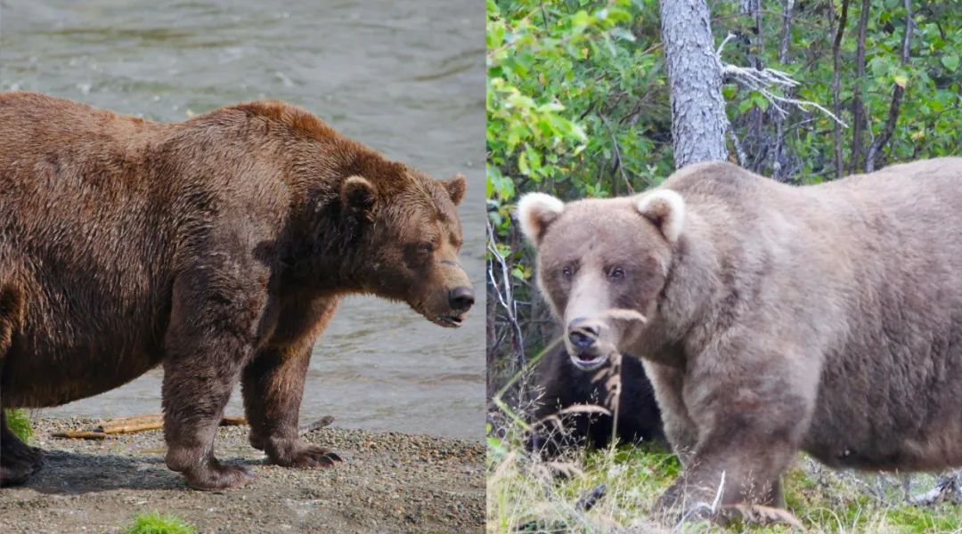 今年“大块头”的体重变化 ,左边是六月底,右边是九月中旬, 图源 :explore.org