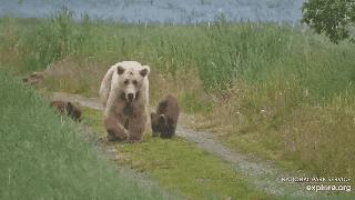 然而,在两只小熊出现后不久,格雷泽经历了失去的痛苦。7月底的一个下午,它带着两只小熊在瀑布上钓鱼,然后两只小熊相继被湍急的水流冲下去。。