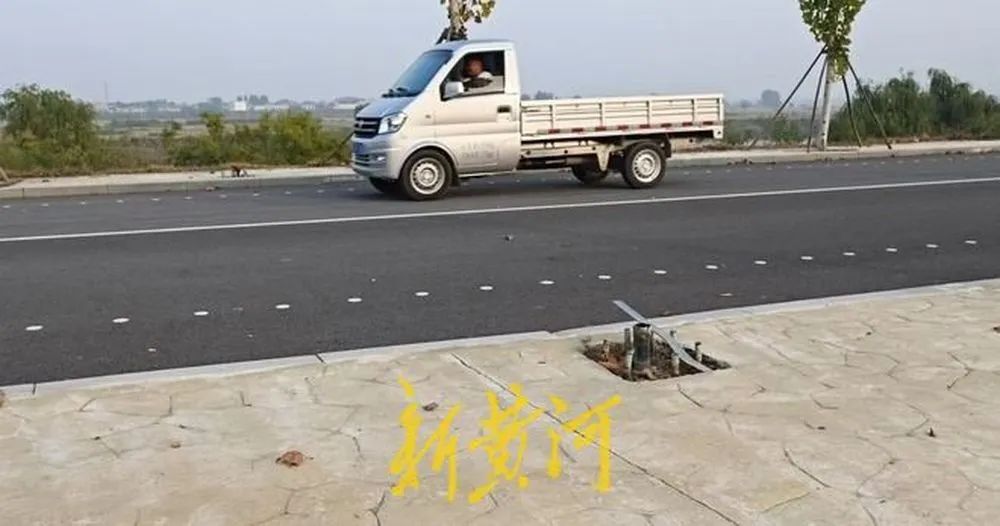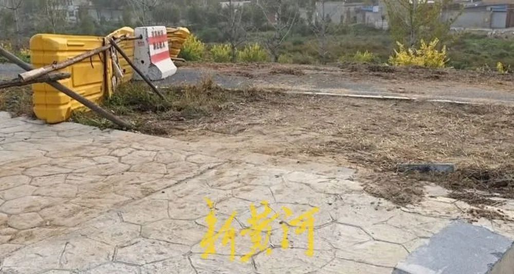 11岁的保定男孩骑车被碾压的路面已经设置了禁入标志,村民们移开了堵路桩。